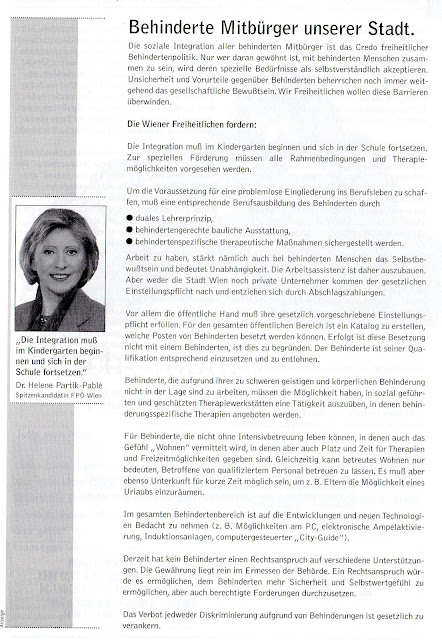 Dr. Helene Partik-Pable mag zwar für die FPÖ "gekämpft" haben, hat aber auch für ihre behinderte Tochter gekämpft, um zukünftig eine bessere schulische, therapeutische und behindertengerechte Umwelt vorzufinden.